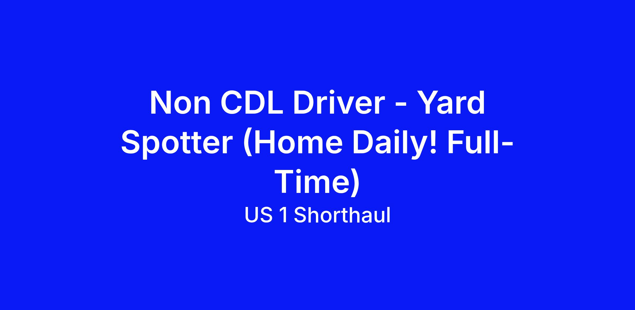 Non CDL Driver - Yard Spotter (Home Daily! Full-Time)