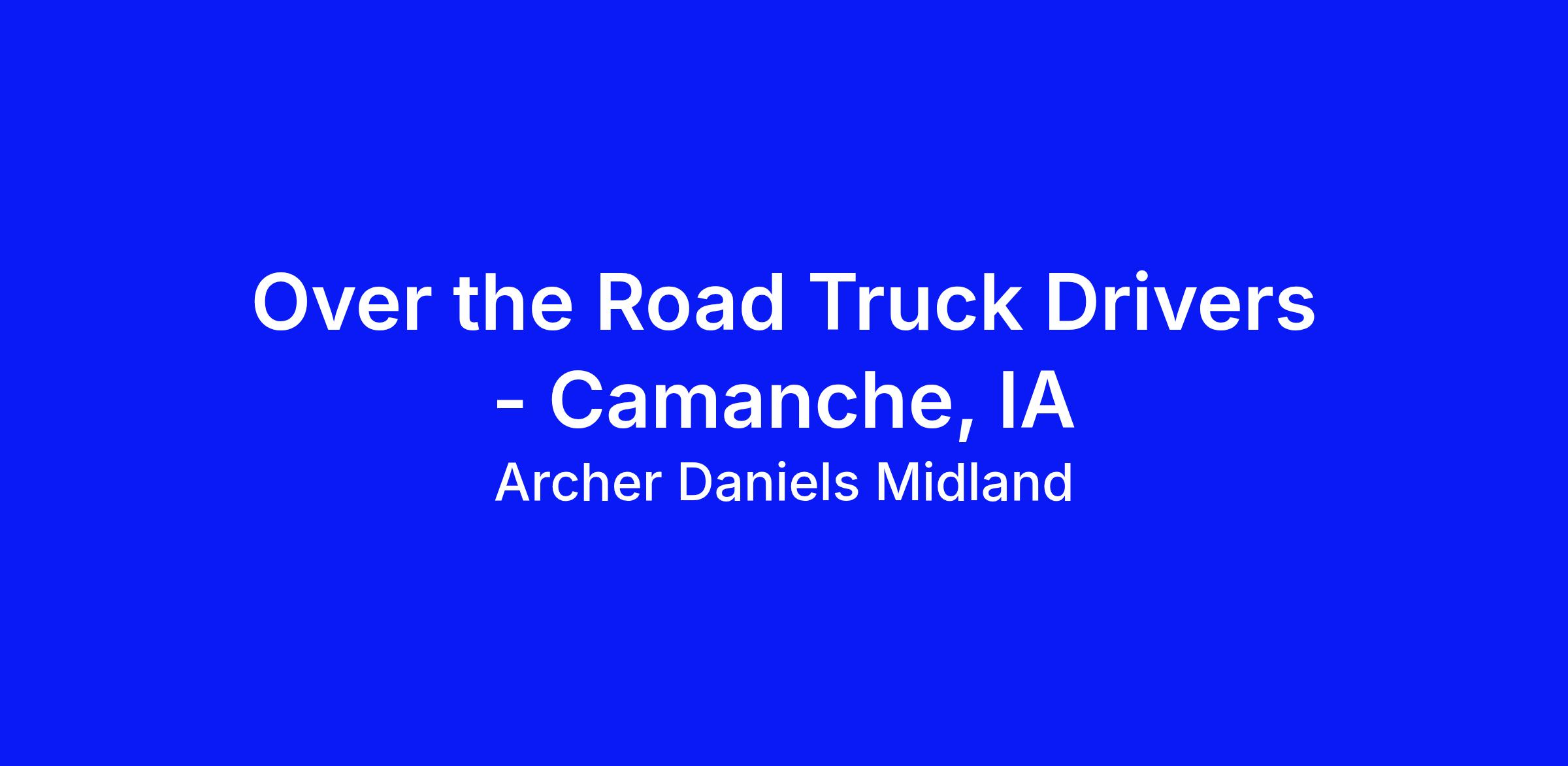 Position Summary:ADM Trucking, Inc. is seeking reliable and safety-oriented Over-the-Road (OTR) Class A CDL Drivers to join our team based out of Camanche, IA. As a vital part of our nationwide logistics operations, you’ll be responsible for long-haul deliveries across state lines—representing ADM with professionalism and dependability on every mile.