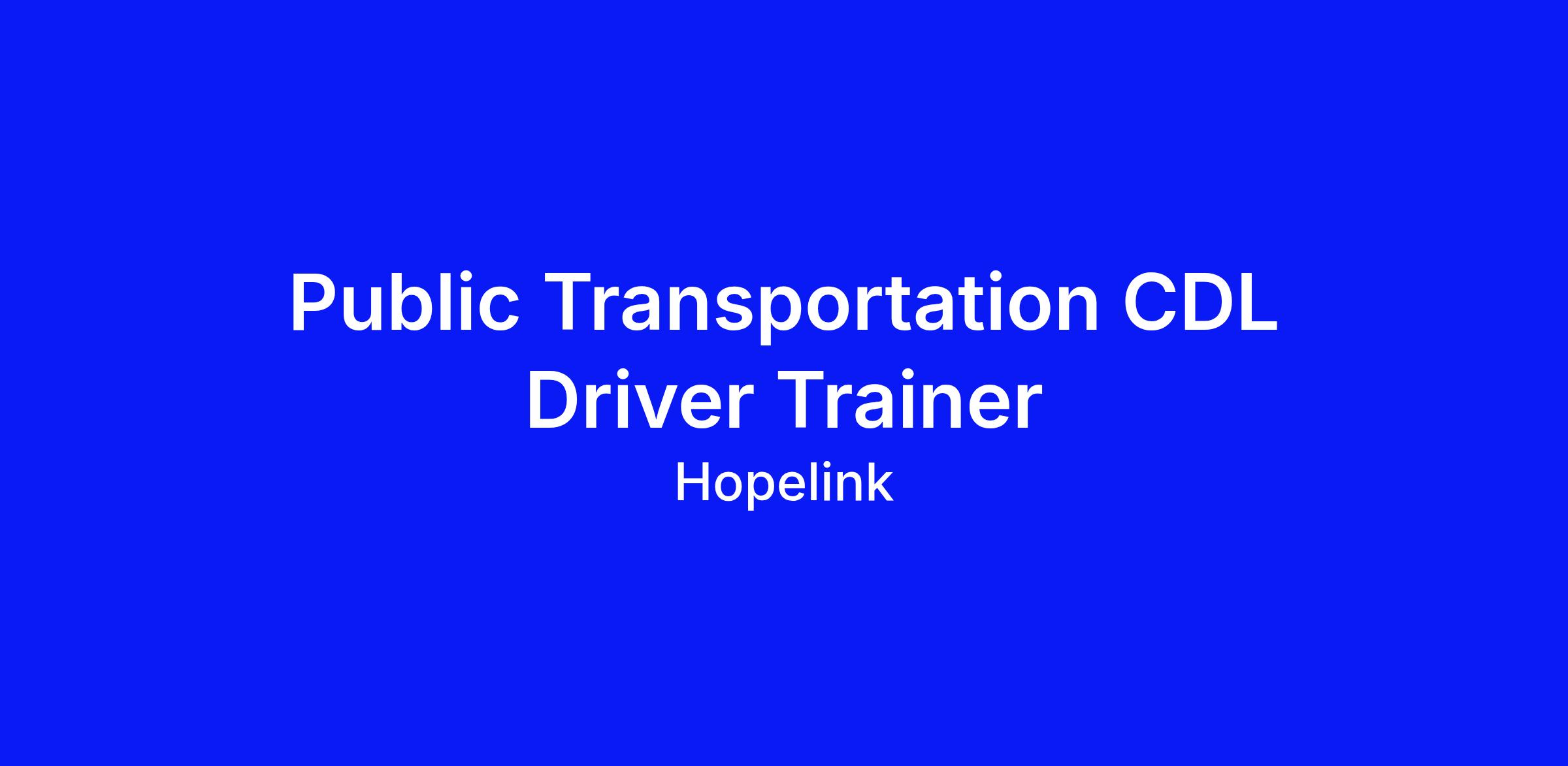 The CDL Driver Trainer provides safety and route training to Direct Operations drivers. Hopelink provides public transit through a contract with King County Metro. The service offers bus routes using smaller buses that can go off regular routes to pick up and drop off passengers. The Trainer performs all regular training functions to prepare an individual for the driver position and provides leadership, guidance, and training to drivers with various levels of experience (including drivers with or without a Commercial Driver License (CDL)) with an emphasis on safety and customer service.