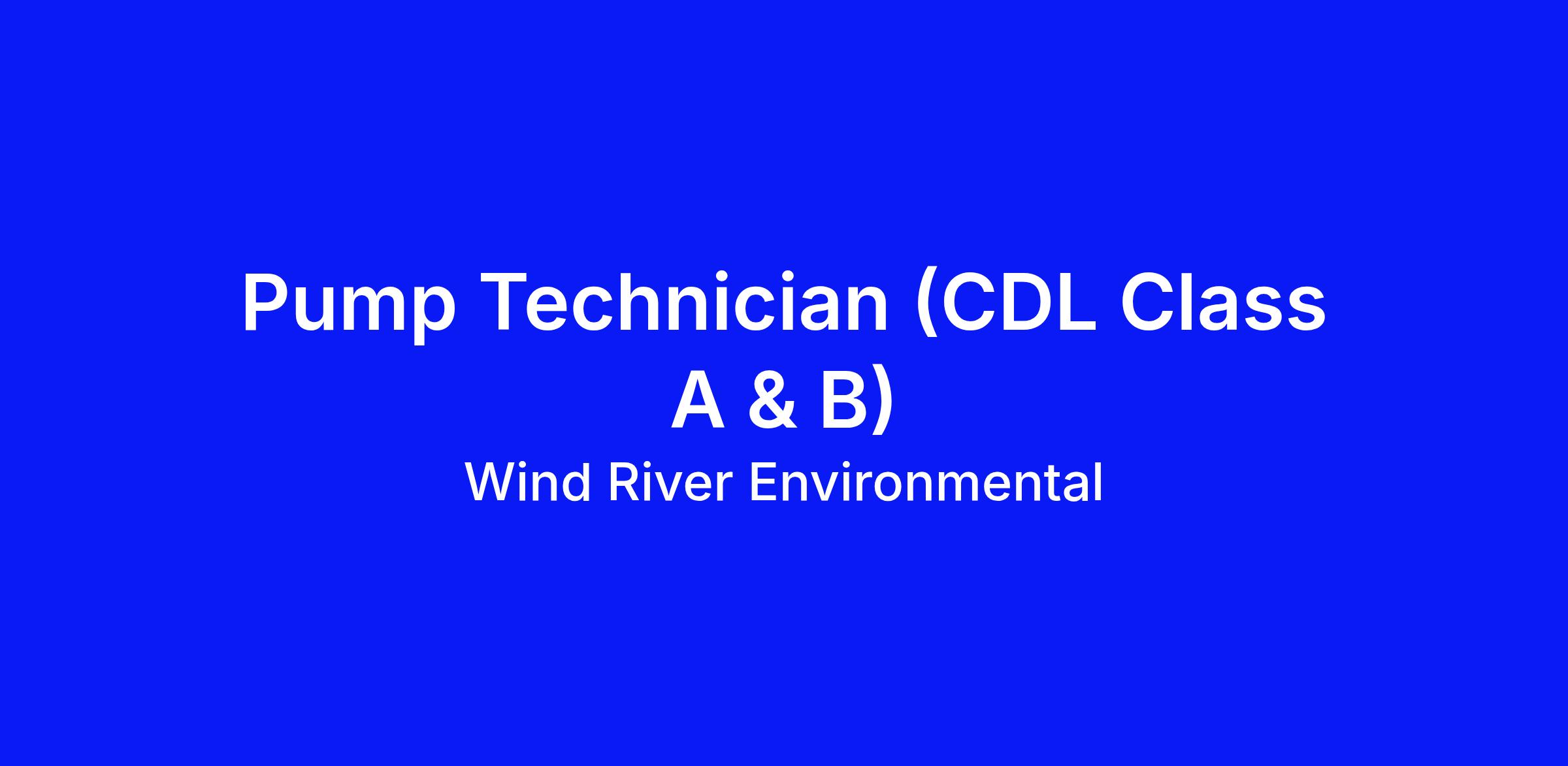 Wind River Environmental is seeking a dependable, safety-minded Pump Technician to join our team! If you enjoy hands-on work, operating trucks and equipment, and providing great service while working independently — this is the opportunity for you.