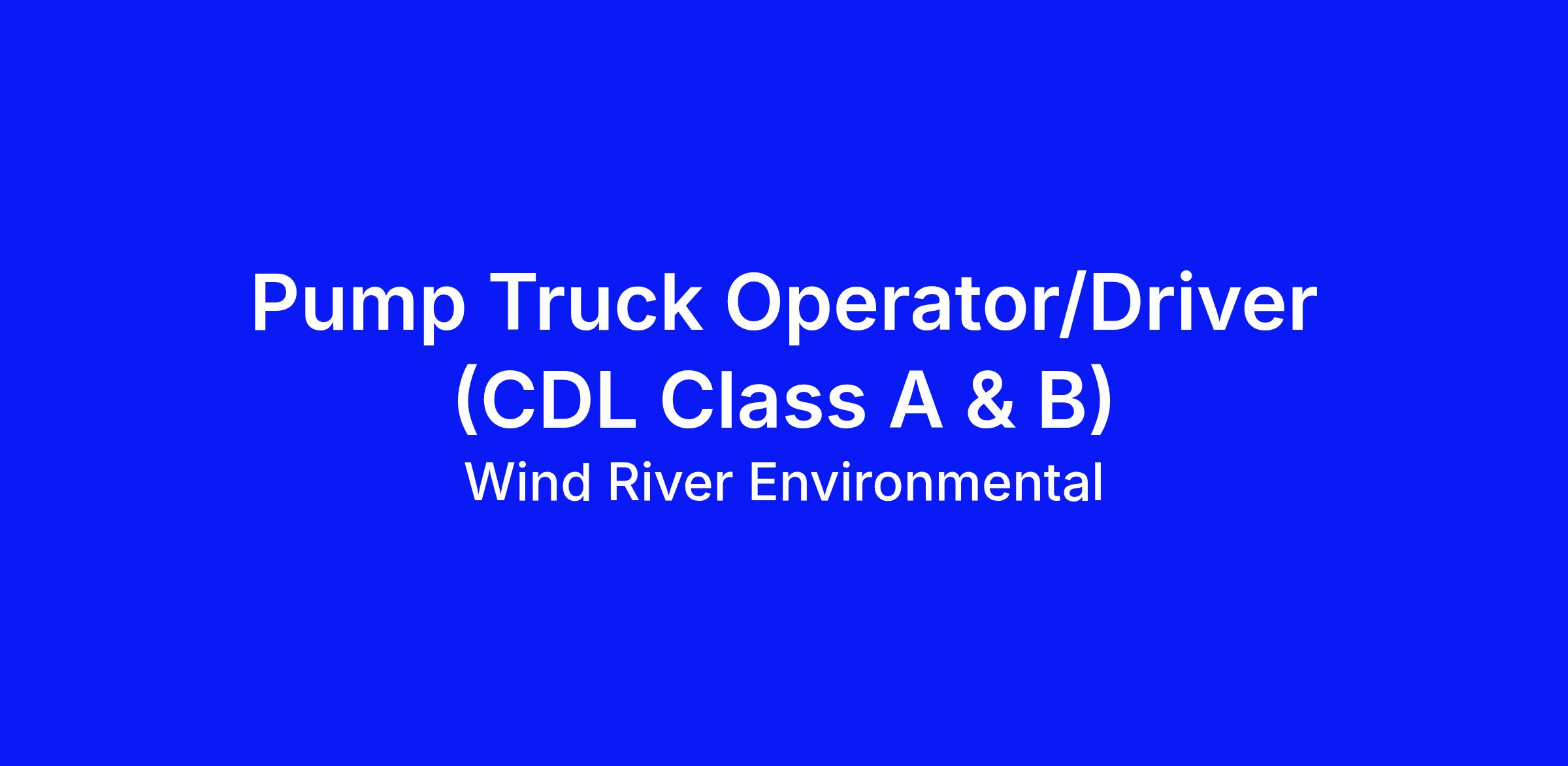 Wind River Environmental is seeking a dependable, safety-minded Pump Technician to join our team! If you enjoy hands-on work, operating trucks and equipment, and providing great service while working independently — this is the opportunity for you.