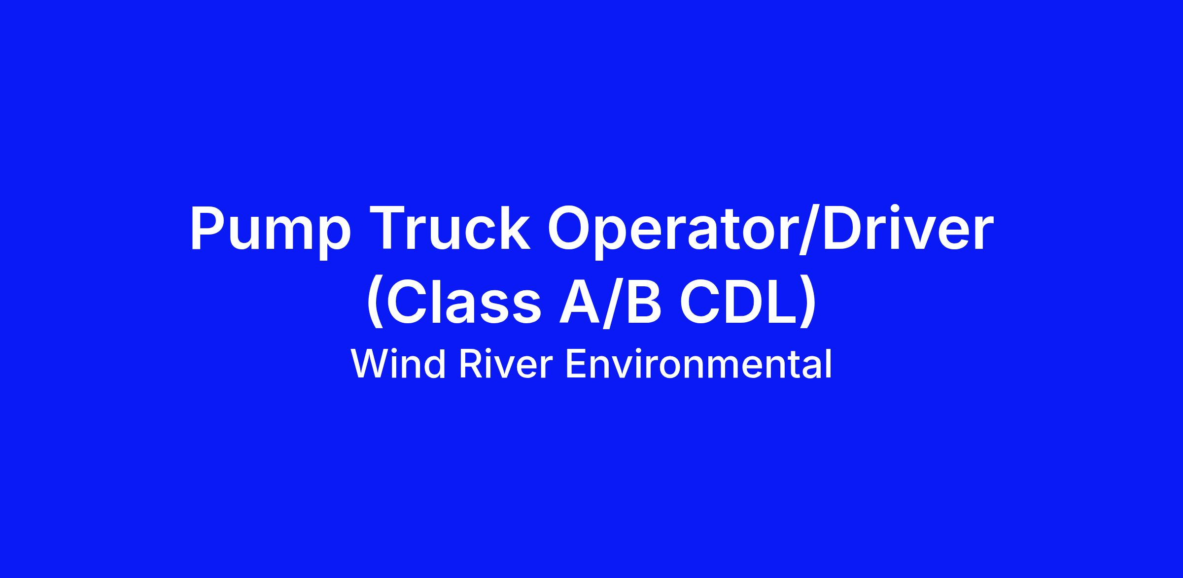 This position is responsible for residential and commercial pumping and disposal of non-hazardous waste and has direct contact with Wind River Environmental customers. Responsibilities include operating a company service truck and driving to various locations to pump septic tanks.