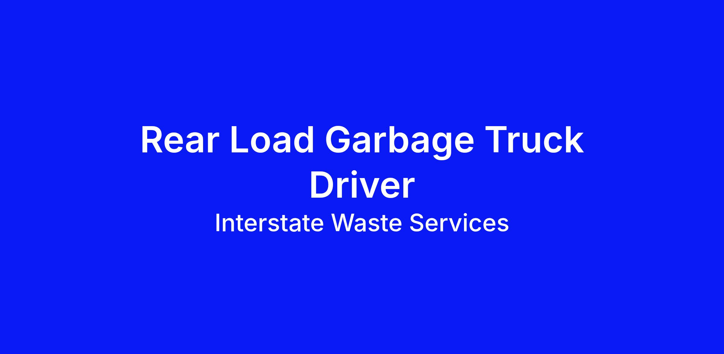 Interstate Waste Services is Now Hiring CDL B Rear Load Truck Drivers!