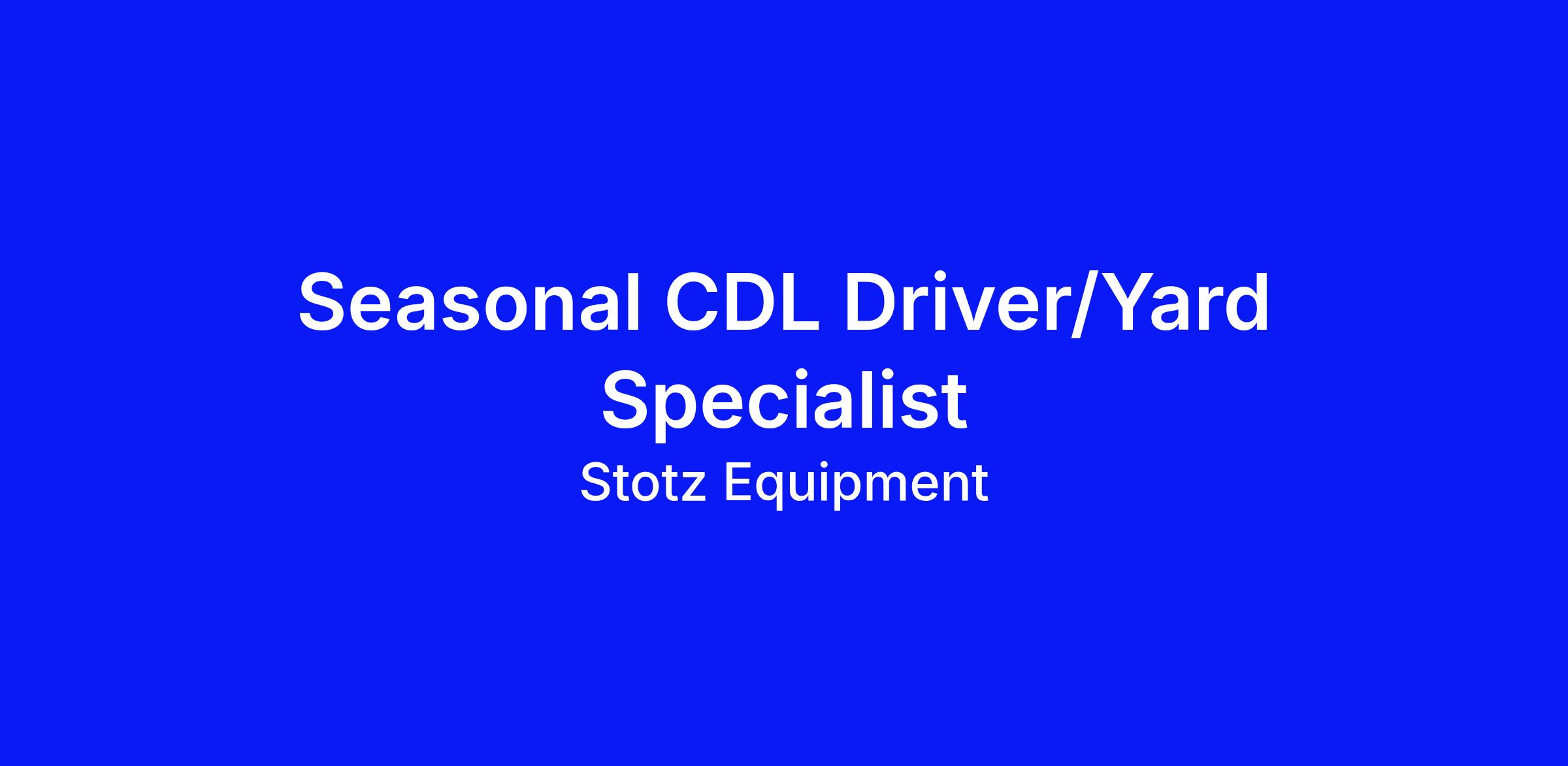 As a Seasonal CDL Driver/Yard Specialist, you’ll be a vital part of both the sales and service teams—hauling equipment for demos, transfers, and customer deliveries. This role goes beyond driving; it’s about representing the company with professionalism, staying organized, and ensuring every delivery is safe, on time, and customer-focused. If you take pride in your work, have a strong attention to detail, and hold a valid Commercial Driver license. If not hauling, you will help maintain an organized yard layout for equipment, attachments, and incoming/outgoing units. Also assisting Service Manager with various tasks with keeping equipment and workspaces in order so our teams can operate at a high level—especially during peak seasons.