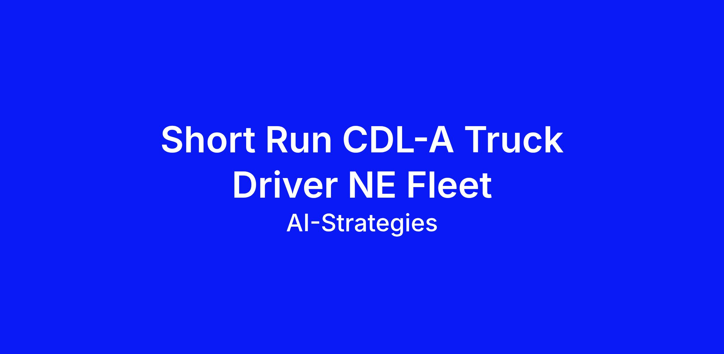 Short Run CDL-A Truck Driver NE Fleet