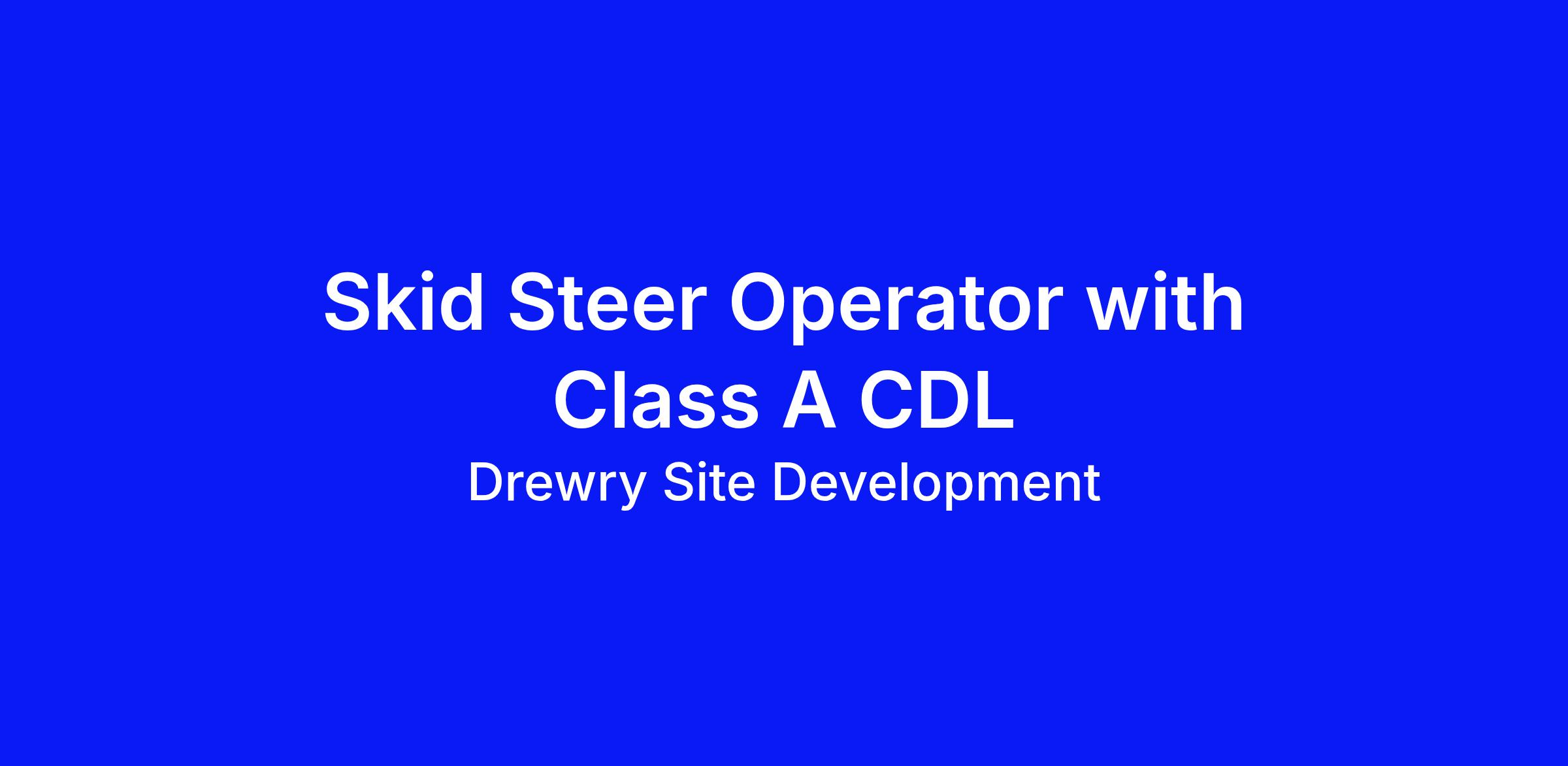 As a Skid Steer Operator with CDL at Drewry Site Development, you will play a crucial role in the success of our projects. Your precision and expertise will help us deliver top-quality results to our clients.