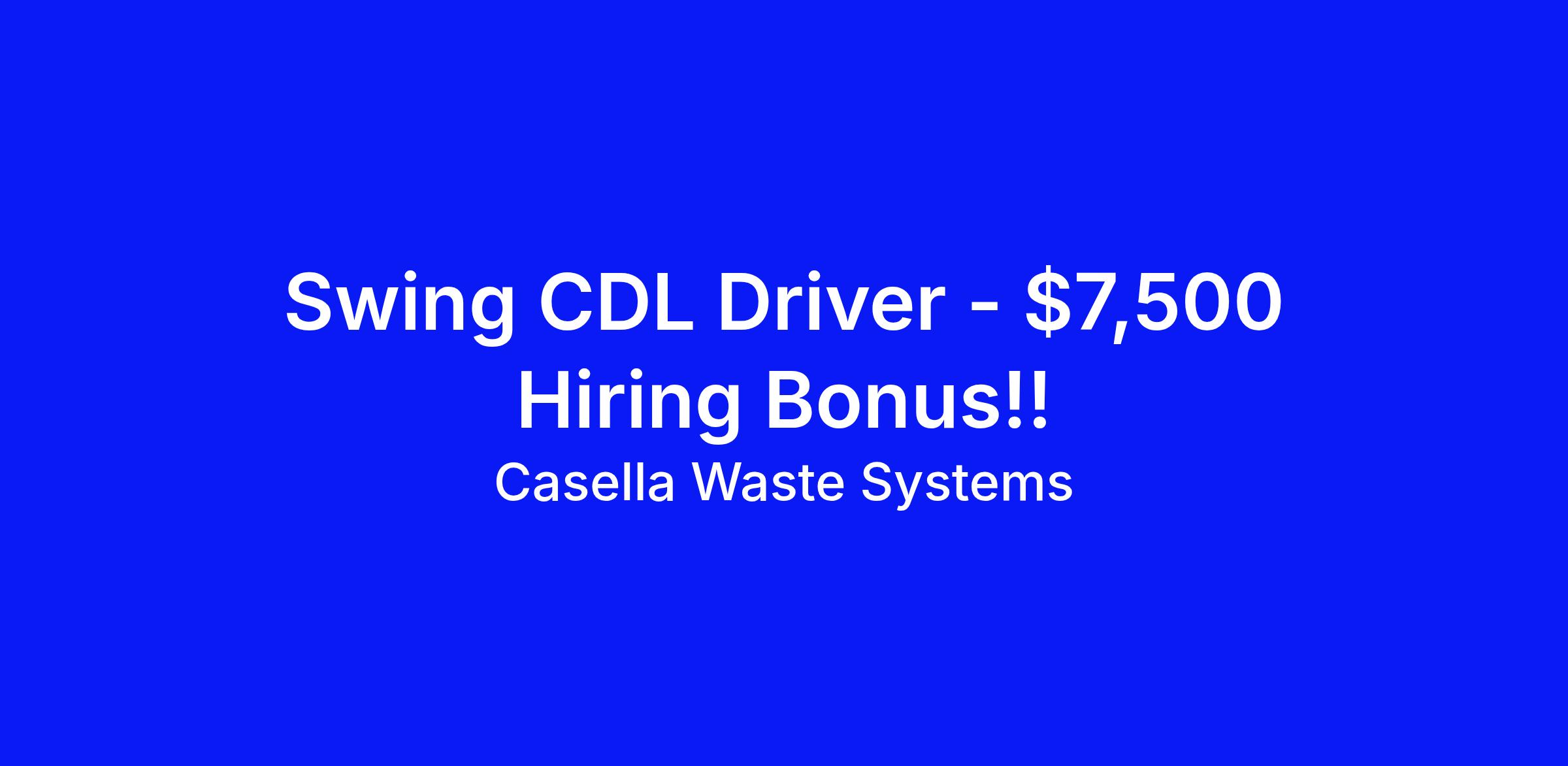 The Swing CDL Driver will be responsible for the safe and efficient operation of rear load, front load, side load, and roll off trucks, while providing prompt, courteous and complete waste removal services for customers on various routes. The Driver safely maneuvers assigned vehicle in residential or commercial environments; navigates high traffic and congested roadways, driveways, alleyways, and lots and provides excellent customer service. The driver must have the ability to make positive contributions to their surrounding communities on behalf of Casella.