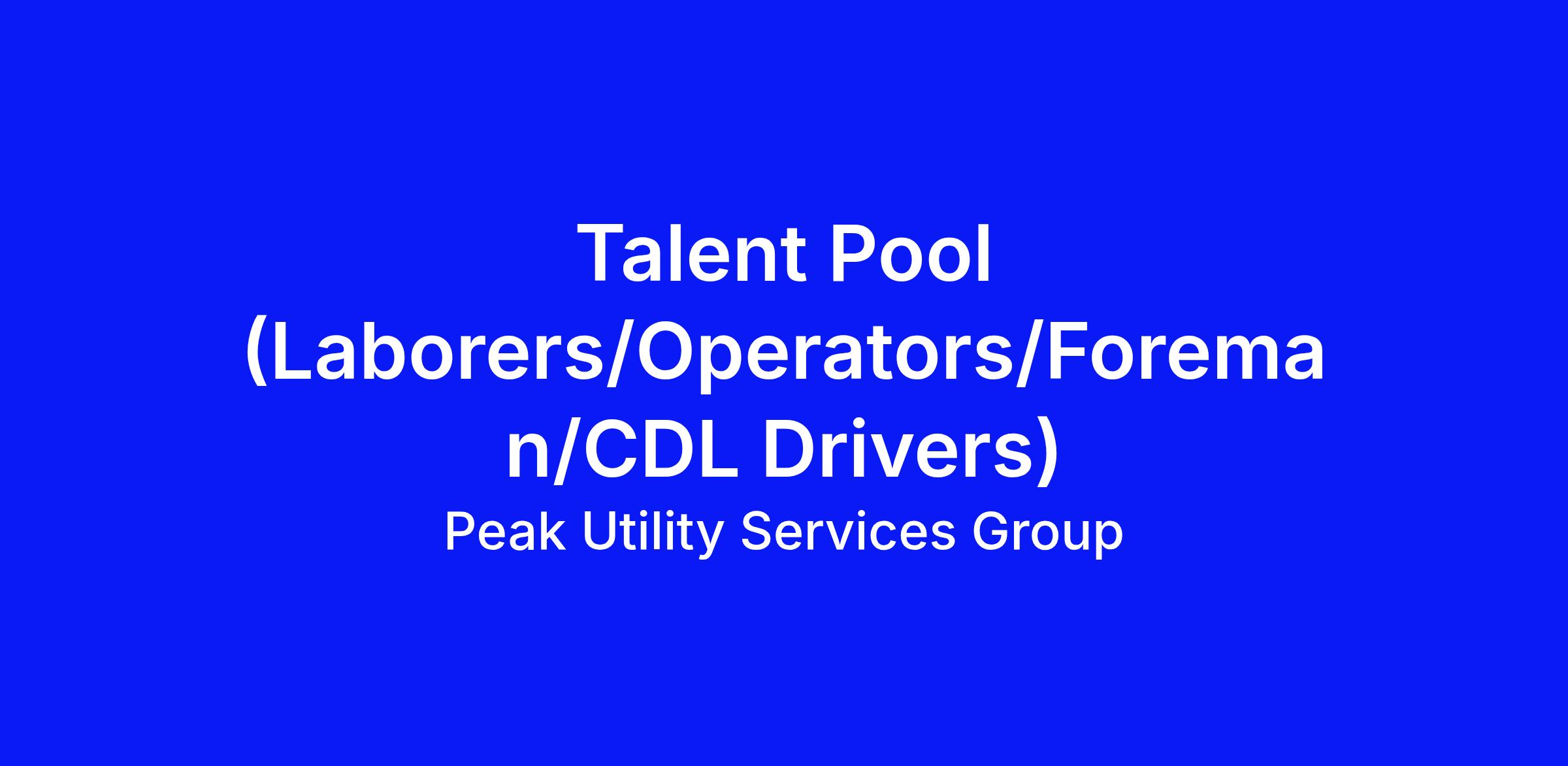 Talent Pool (Laborers/Operators/Foreman/CDL Drivers)