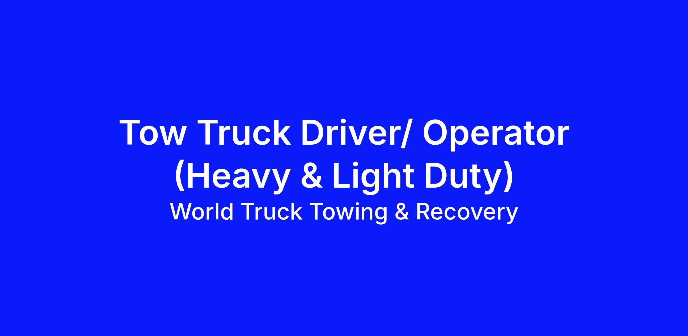 Hiring all positions to keep up with high demand. Light, Medium, Heavy Towing, & Recovery