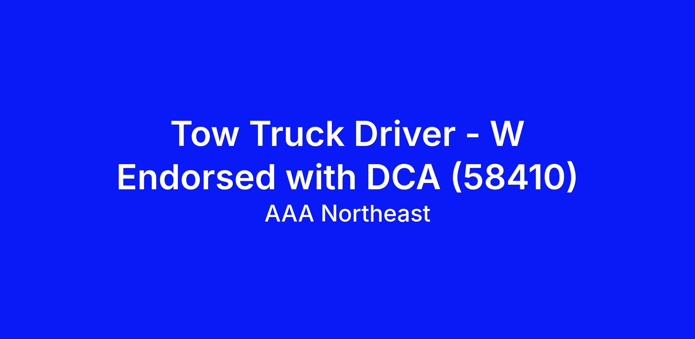REQUIREMENTS: Must have current or prior Tow experience with a "W" Tow endorsement and active DCA license.