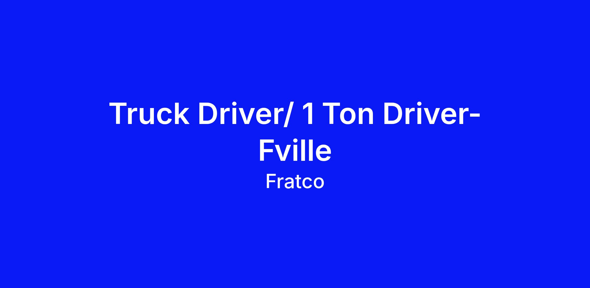 At Fratco Inc, we believe that every team member is essential to our success. As you step into your new role as a One Ton Driver, we want you to know that you are joining a dynamic and supportive team that is excited to work alongside you. We value your skills, experience, and the unique perspectives you bring, and we are committed to providing you with an environment where you can thrive.