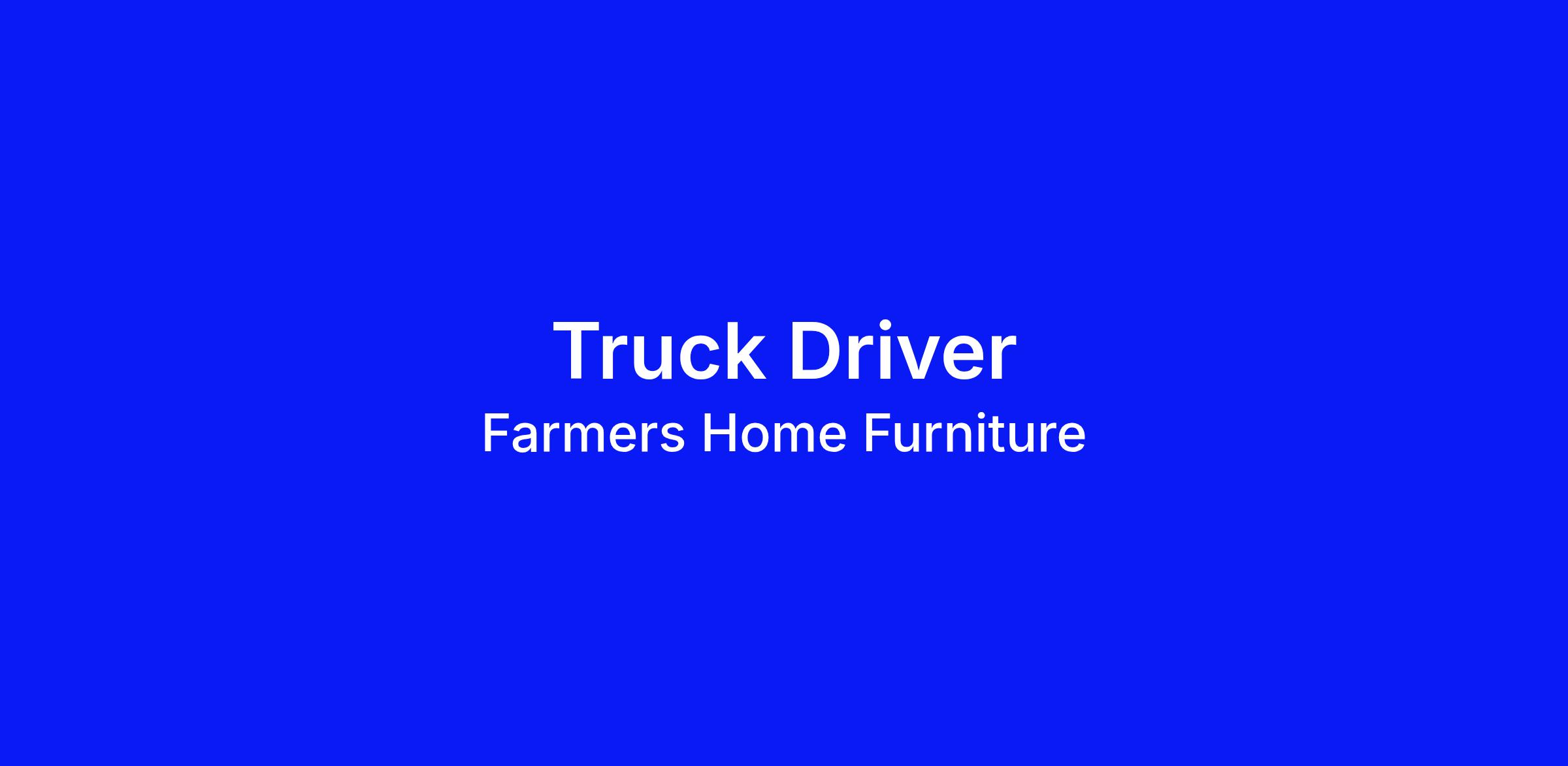 Join our team for an exciting opportunity in transportation! Our truck drivers are afforded the opportunity to be home most nights of the week, with overnight travel only 2-3 nights. Additionally, travel is localized to our store locations, which are in the Southeast region of the U.S. Founded in 1949, Farmers has since become one of the fastest growing furniture retailers, with over 263 store locations. As one of the largest employee-owned companies, we are committed to providing our customers with the best possible service and selection.