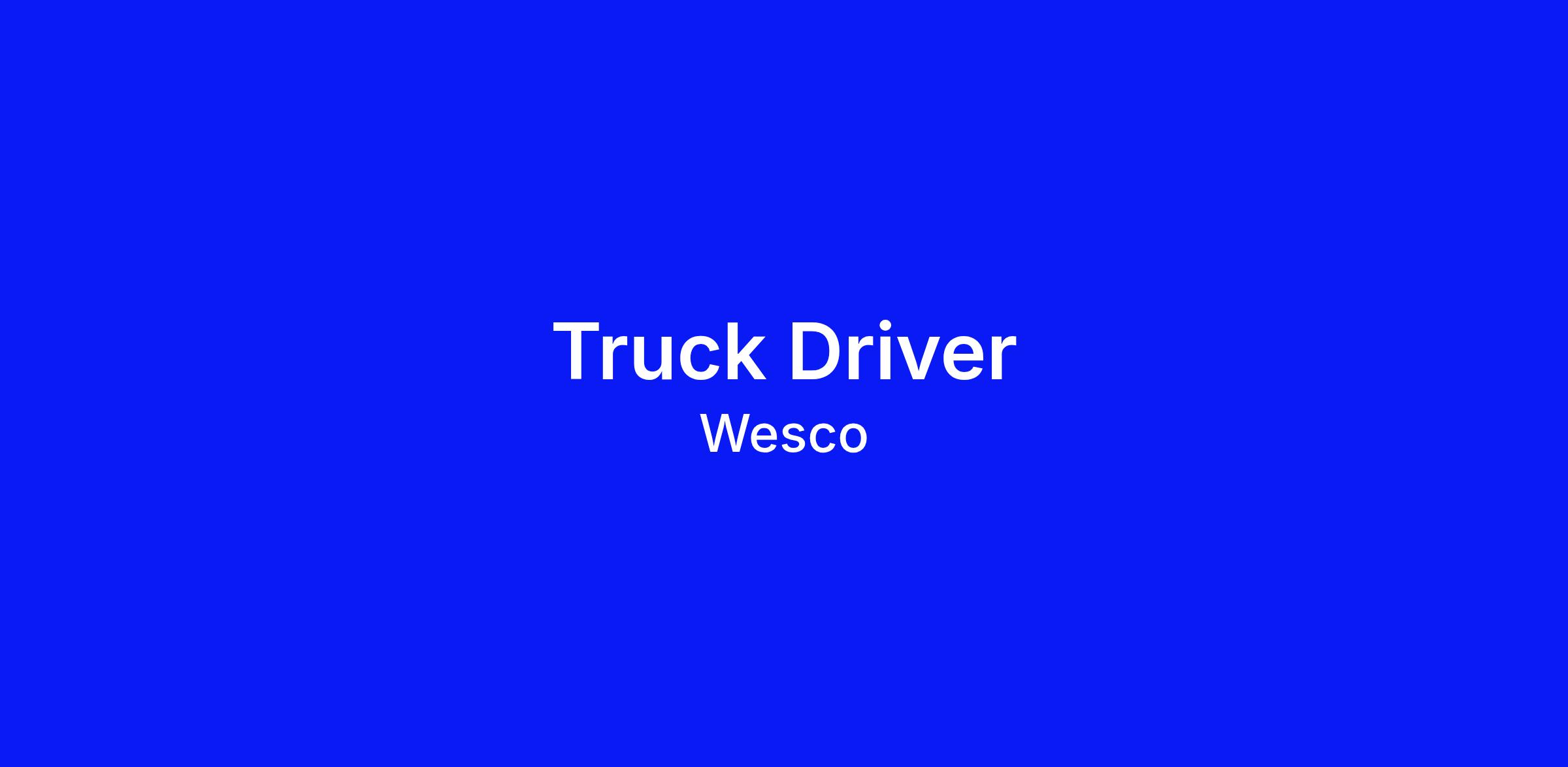 Launch your career as a Truck Driver for Wesco We are hiring immediately for a non-CDL Driver! We will teach you about distribution and supply chain techniques valued by Fortune 250 companies around the globe. We are Wesco. We enable the connected world – you help turn on the power.
