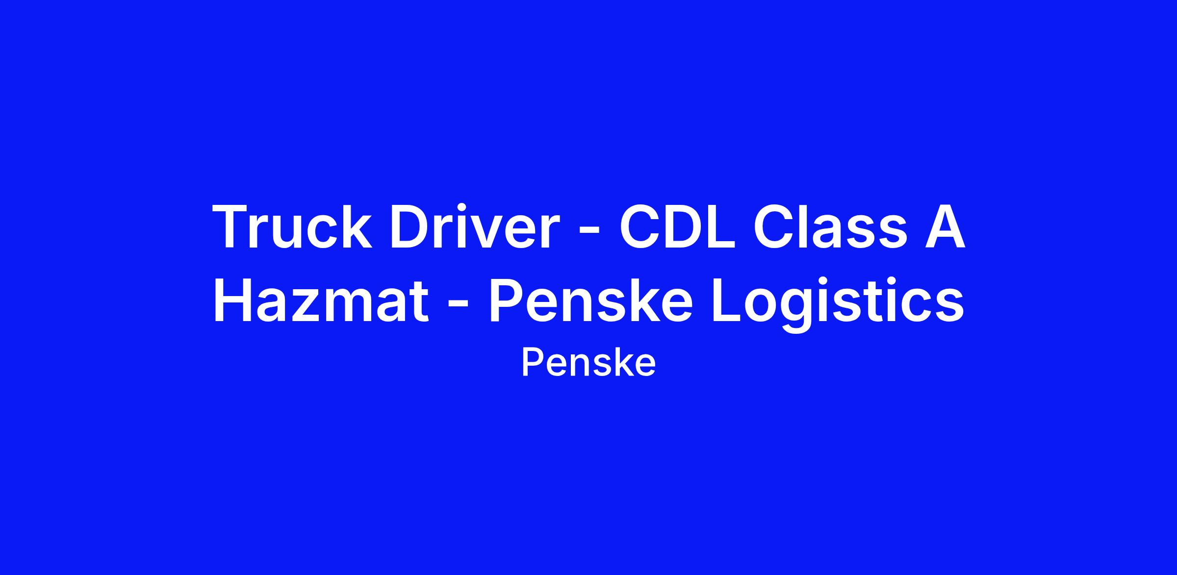 Truck Driver - CDL Class A Hazmat - Penske Logistics