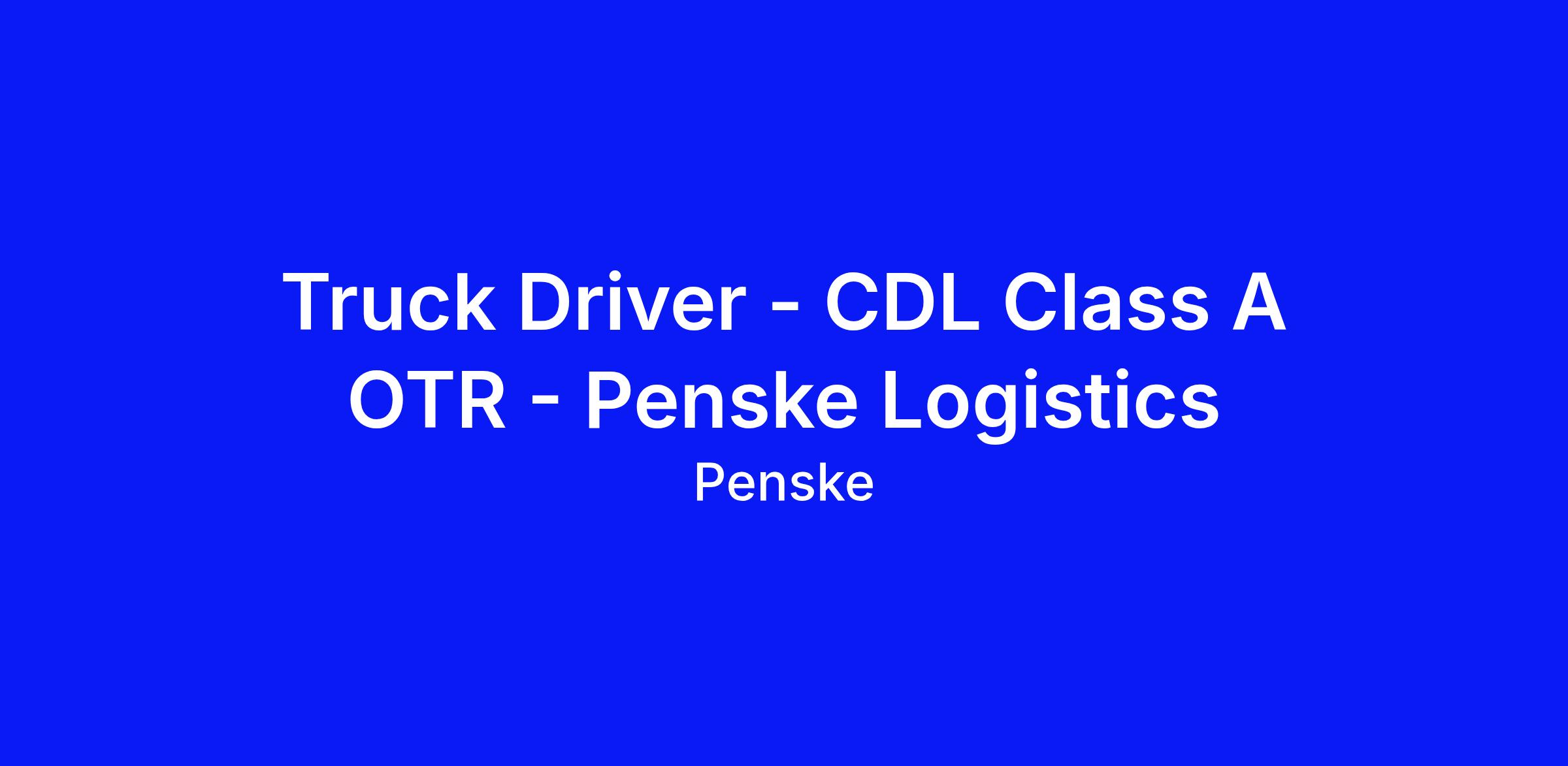 Penske is an Equal Opportunity Employer.