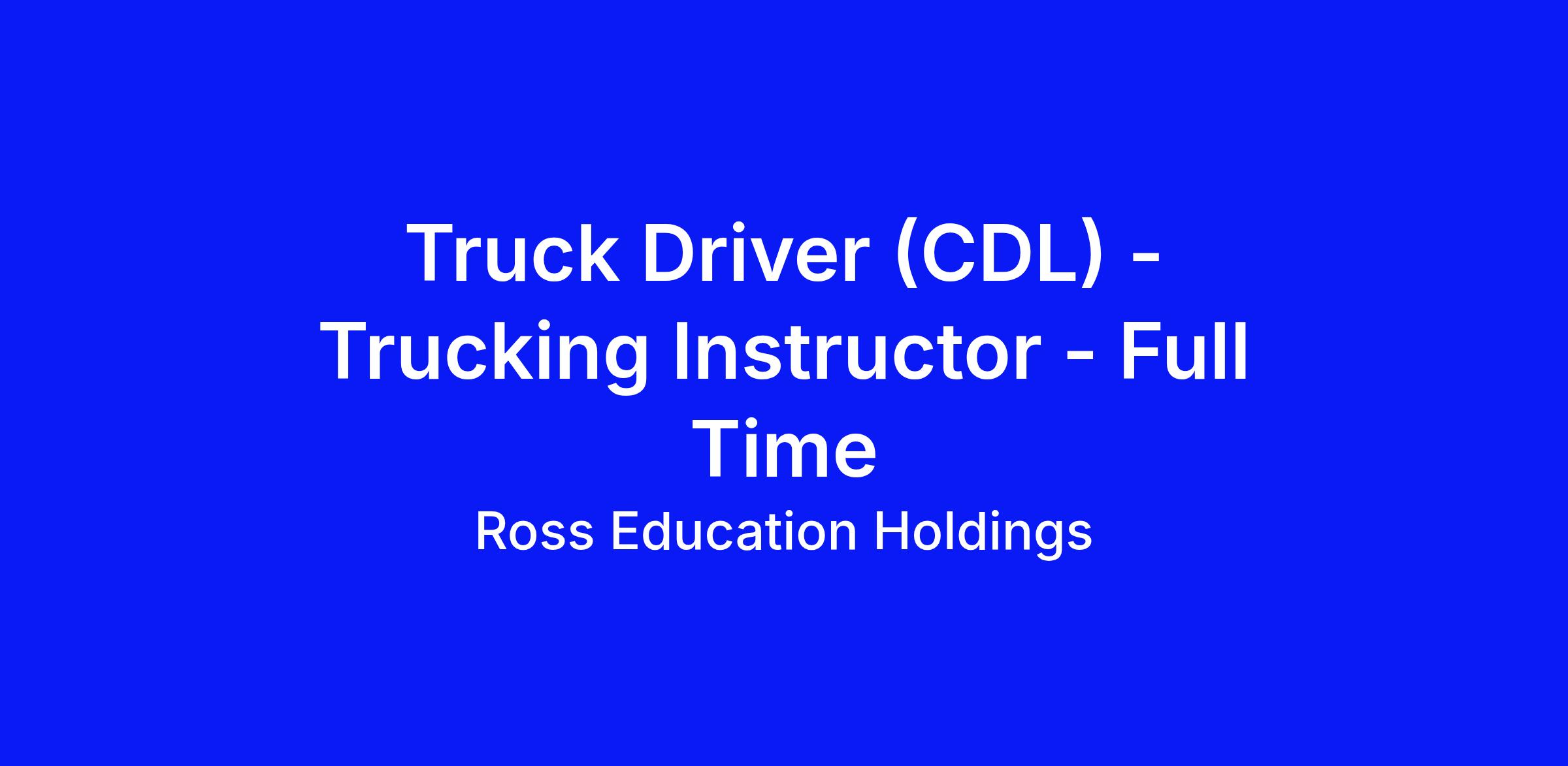 DescriptionCDL TRUCK INSTRUCTOR - FULL TIME - MONDAY-FRIDAY - 8-4:30