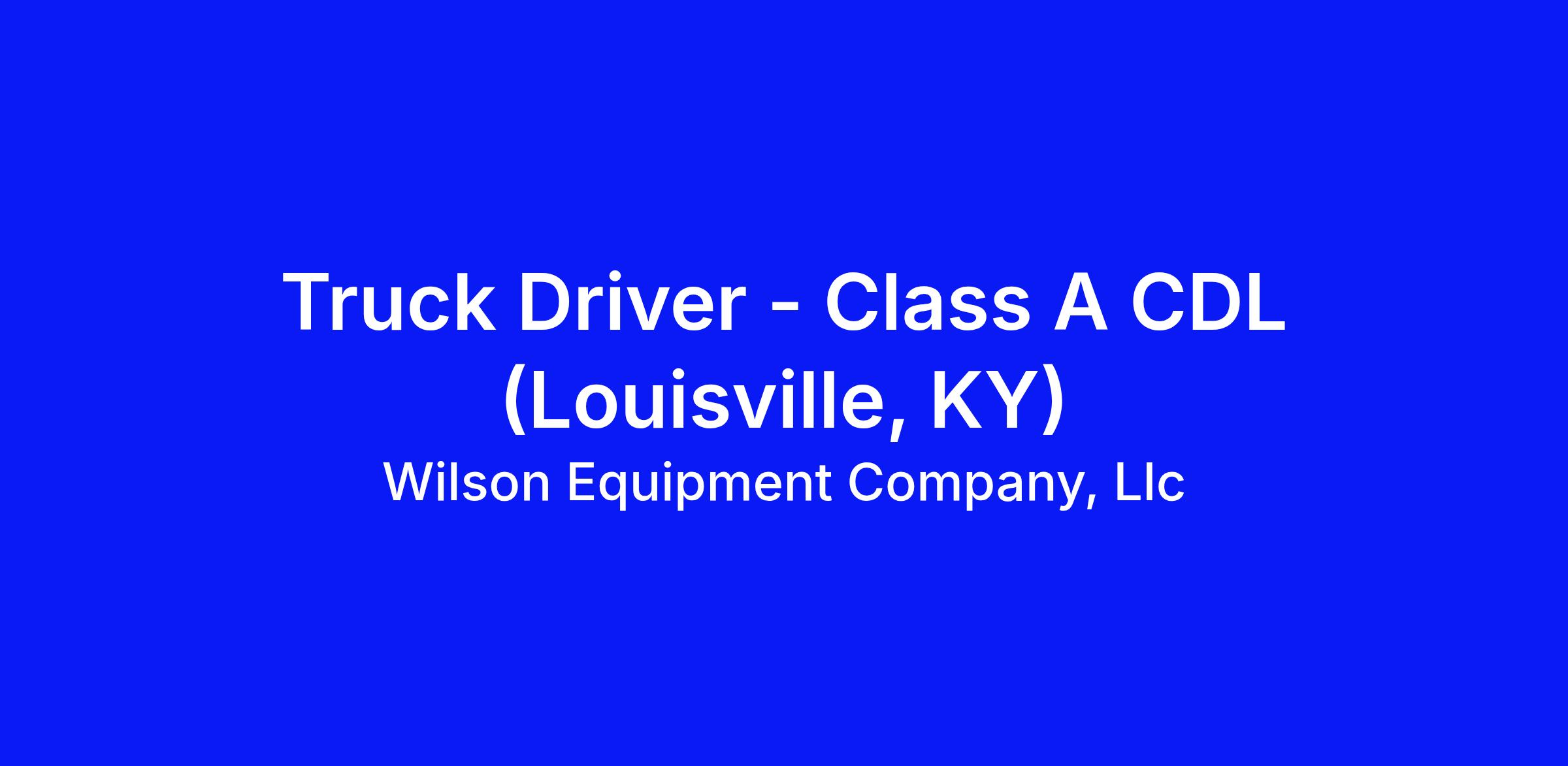 Truck Driver – Class A CDL (Louisville, KY)