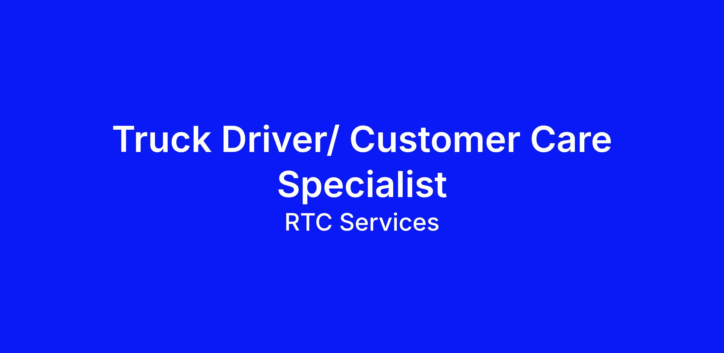 Join RTC Services as a Full-Time Truck Driver / Customer Care Specialist and play an important role in serving our community. This unique position combines the independence of driving with the rewarding experience of delivering outstanding customer service.