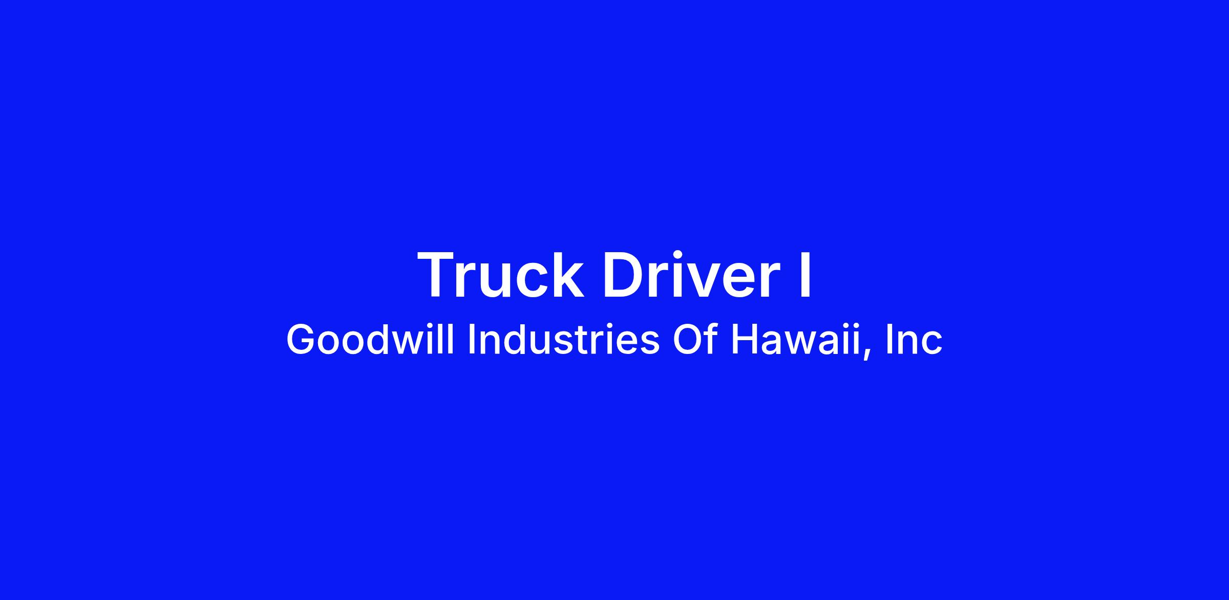 Job Title: Truck Driver I