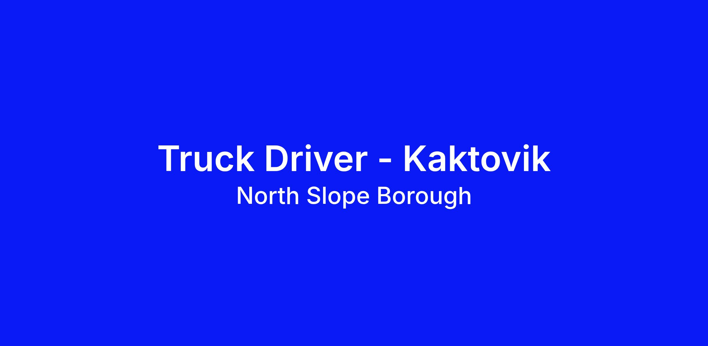 Valid Alaska Commercial Driver's License with N Endorsement Code (hauling liquids in bulk (tank)) that meets North Slope Borough insurance criteria.