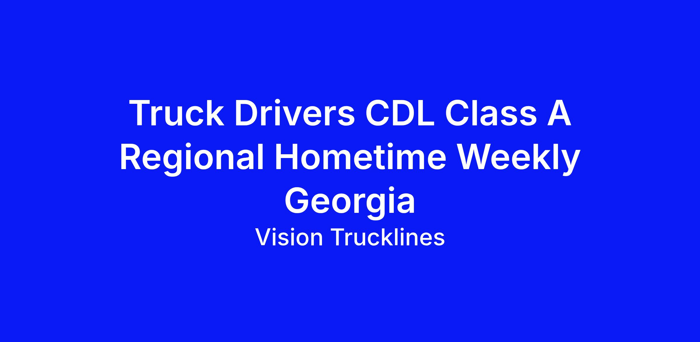 Truck Drivers CDL Class A Regional Hometime Weekly Georgia