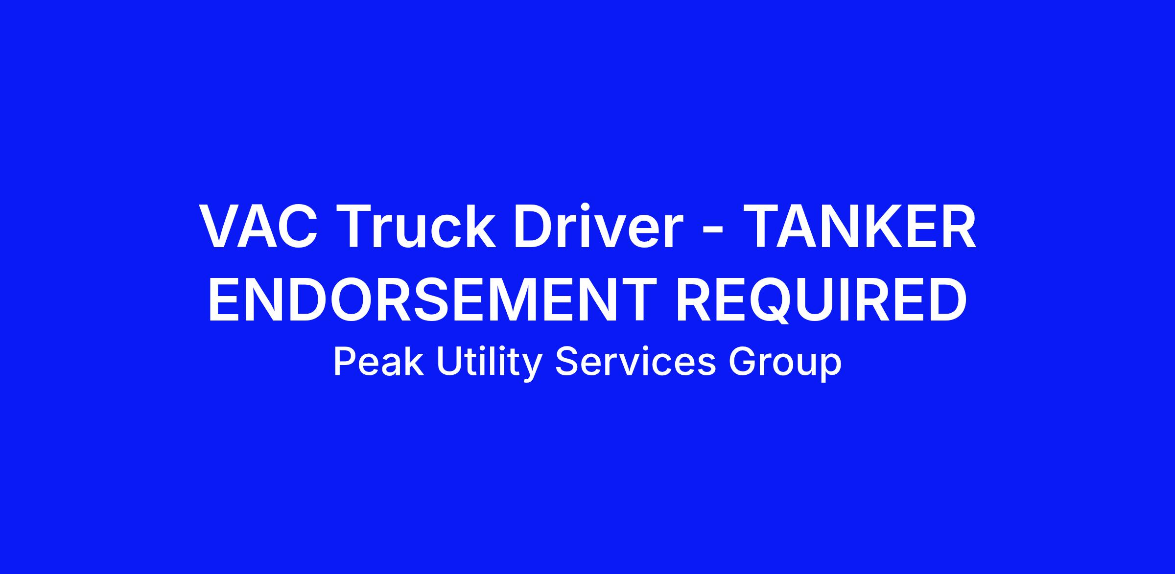 Position Title: CDL Driver – Vac Truck