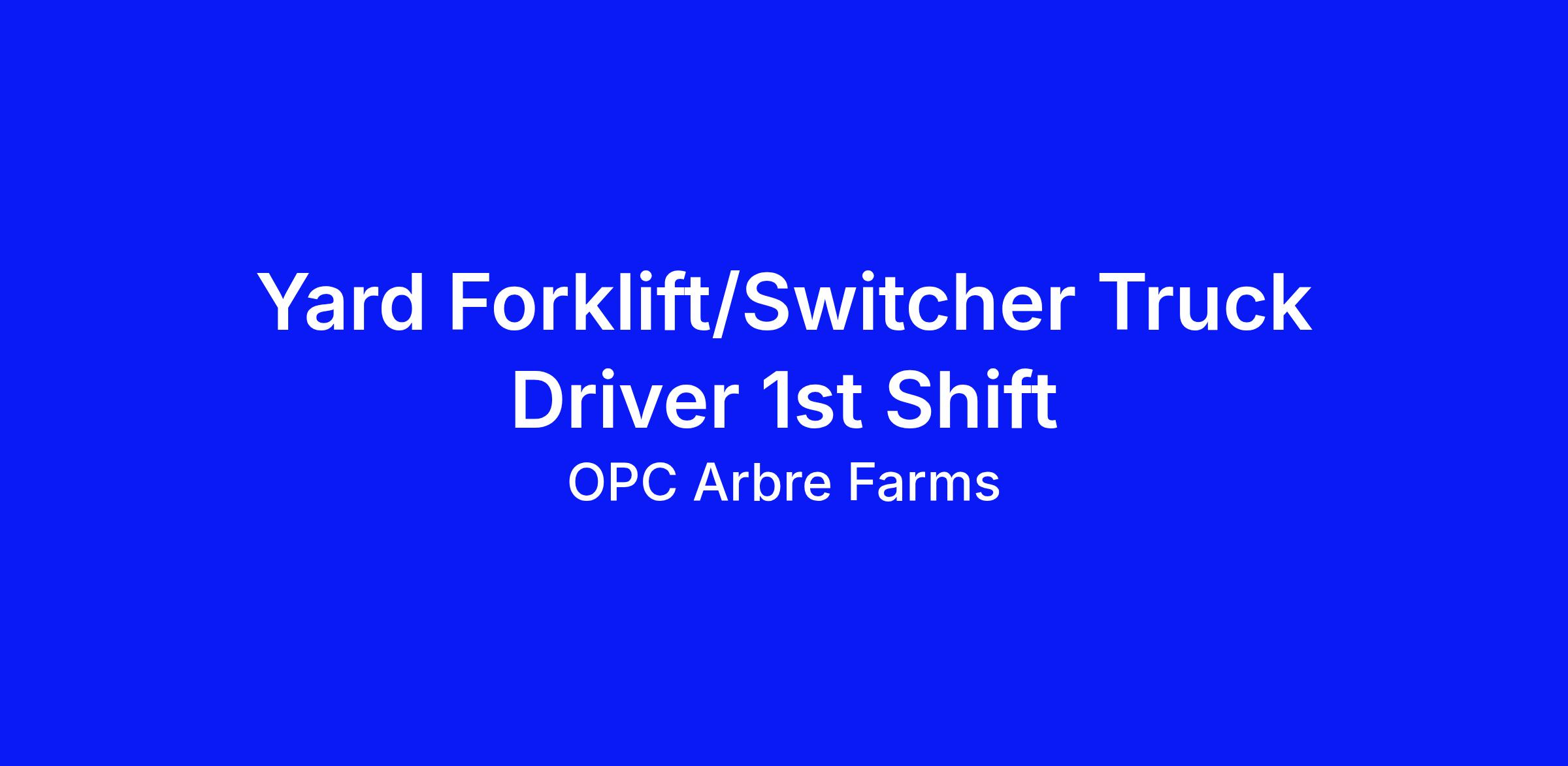 Job Title: Yard Forklift Operator 2 1st Shift Seasonal Position Reports To: Yard Manager FLSA Status: Hourly